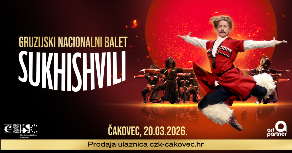 Nakon rasprodanog nastupa 2024., u Čakovec se vraća legendarni gruzijski ansambl Sukhishvili. Svjetski poznat po spektakularnim koreografijama, energiji koja prkosi gravitaciji i pratnji vlastitog orkestra na tradicijskim glazbalima, ovaj ansambl više od 75 godina osvaja pozornice diljem svijeta. Dinamični plesovi, virtuozna izvedba i snažan scenski dojam jamče nezaboravan događaj.