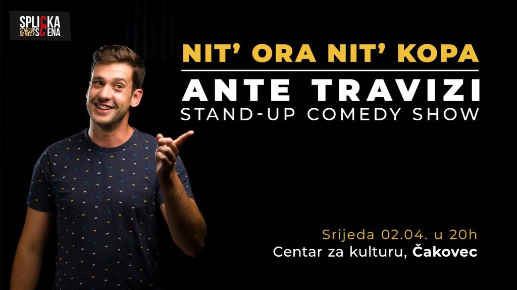 𝐒𝐩𝐥𝐢𝐜𝐤𝐚𝐒𝐜𝐞𝐧𝐚 se vraća 𝗖̌𝗮𝗸𝗼𝘃𝗲𝗰, a ovom prigodom nasmijava vas 𝐀𝐧𝐭𝐞 𝐓𝐫𝐚𝐯𝐢𝐳𝐢 koji izvodi svoj show “𝐍𝐢𝐭’ 𝐨𝐫𝐚 𝐧𝐢𝐭’ 𝐤𝐨𝐩𝐚”