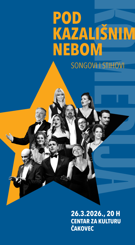 Umjetnici Kazališta Komedija pripremili su program koji spaja govornu i pjevanu riječ, glazbu i pokret te publici nude stihove znane, neznane, zaboravljene, evergreene, male kazališne štiklece… U Centar za kulturu Čakovec 26. ožujka s početkom u 20 sati dolaze Komedijini solisti i glumci Vlatka Burić Dujmović, Mila Elegović, Ana Magud, Danijela Pintarić, Vanda Winter, Ervin Baučić, Dražen Bratulić, Ivan Glowatzky, Filip Hozjak, Đani Stipaničev, Adalbert Turner Juci, plesači Ivana Mesec i Roman Vrančić te članovi orkestra Kazališta Komedija.